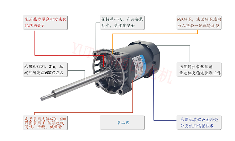(4)高温马达采用高温H级绝缘材料,保证马达在高温环境下安全运行,不老化、不烧坏。