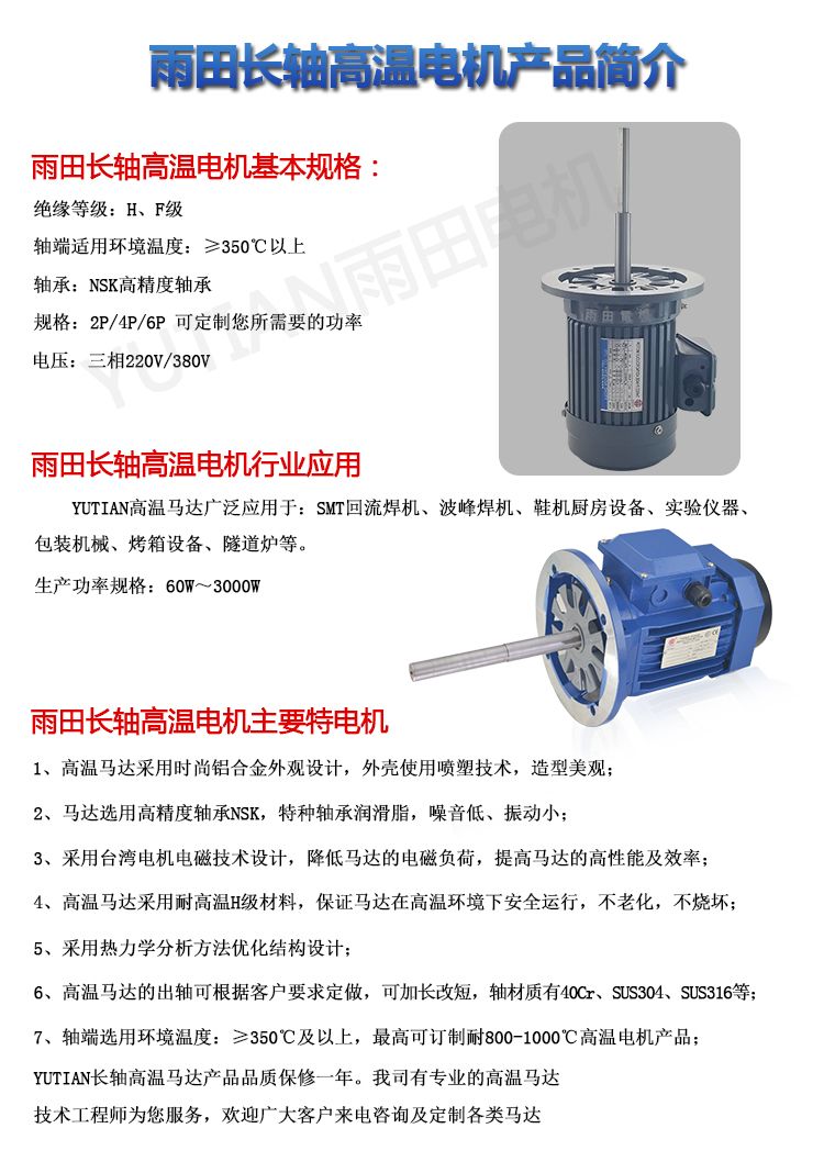 (6)高温马达的出轴可根据客户要求订做,可加长改短,轴材质分别为金钢轴与不锈钢轴及钛钢轴。